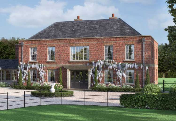 The house will benefit from spacious and comfortable accommodation whilst incorporating the latest technological advances to complement today’s lifestyle. The elevations of the house will be constructed of handmade bricks with a clay tiled roof, Georgian styled sash double glazed windows with the heating and hot water system powered by a combination of oil fired central heating and air source heat pumps.
